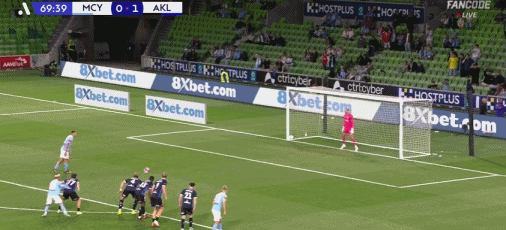 第70分鐘,德弗里斯手球送點,卡普托主罰命中,墨爾本城1-1奧克蘭FC